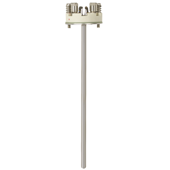 該溫度探桿符合DIN 43735標(biāo)準(zhǔn),其配置的熱電偶測(cè)量插芯需安裝在保護(hù)裝置中。無(wú)護(hù)套保護(hù)時(shí),只建議在特殊情況下操作。這些測(cè)量插芯由多樣的礦物絕緣鎧裝電纜制成。感溫元件位于測(cè)量探桿底部。